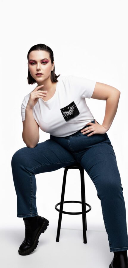 Tshirt de Algod贸n Blanco con Bolsillo de Lentejuelas